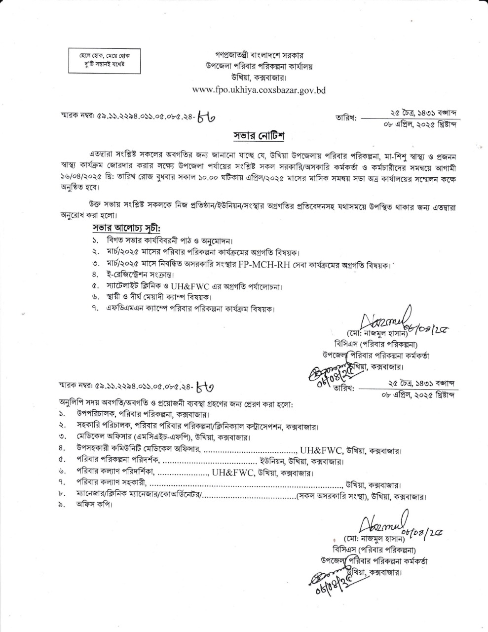 | ৩ | এপ্রিল-২০২৫ মাসের সমন্বয় সভার নোটিশ | | ১৩-০৪-২০২৫ | দেখুন | |